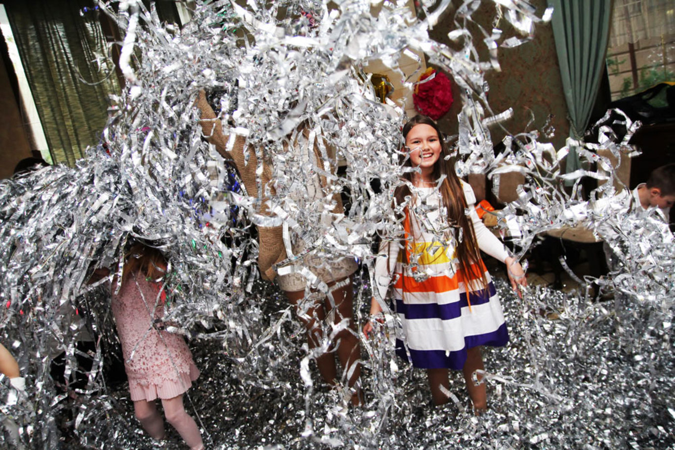 Устройте на празднике настоящую серебряную дискотеку! Множество ярких серебряных полосок, как кристаллы будут переливаться во время танцев и помогут создать красивые фотографии!