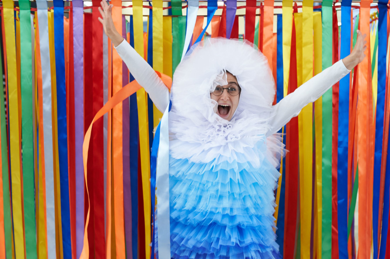 Ленточный лабиринт перенесет ребят в яркий мир лиан. Это отличная зона для красочных семейных фото!)